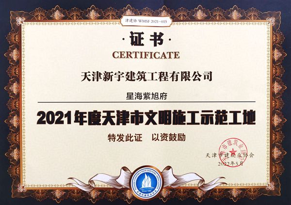 星海紫旭府荣获2021年度天津市文明施工示范工地