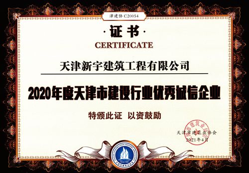 我公司荣获“2020年度天津市建设行业优秀诚信企业”称号