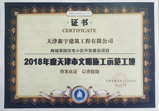 商城荣园住宅小区开发建设项目获2018年度天津市文明施工示范工地