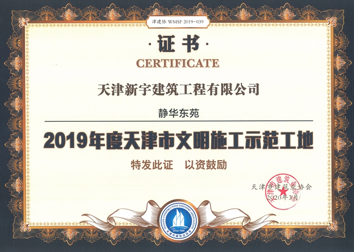 静华东苑被评为2019年度天津市文明施工示范工地